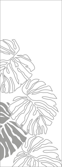 De hardglazen schuifdeuren zijn verkrijgbaar in dezelfde 6 afwerkingen als voor de hardglazen schuifdeuren zonder decor. Decoraties zijn gezandstraald op transparante, gesatineerde en schuifdeuren van transparant rookglas. Op de schuifdeuren van gesatineerd rookglas zijn de decoraties transparant.